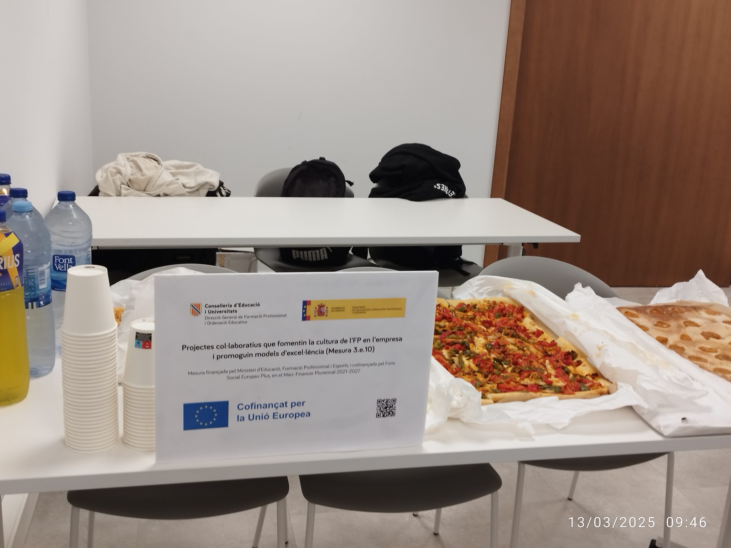 La jornada es va completar amb un petit refrigeri que va permetre treballar aspectes d’etiqueta professional i networking. Per reforçar la imatge institucional i el sentiment de pertinença, tots els alumnes assistiren uniformats amb polos dissenyats específicament per a l’acte.